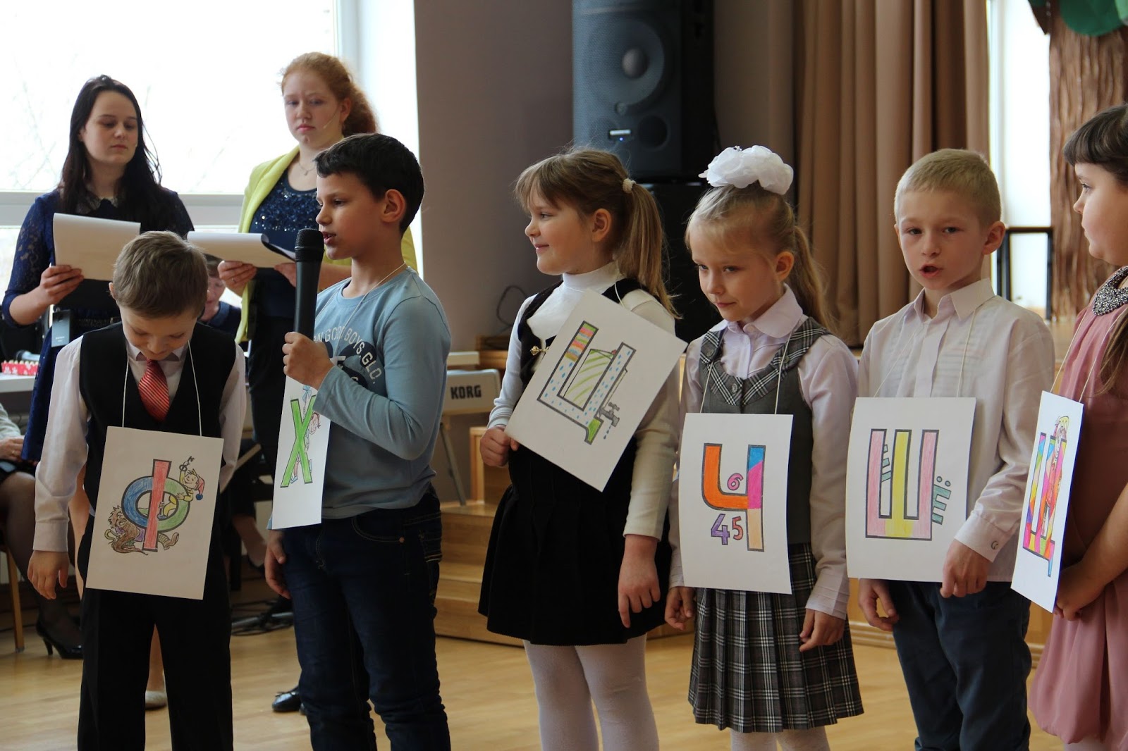 Первоклассники и их учителя тоже постарались, каждый ученик выучил стихотворение, ребята подготовили песни о буквах, инсценировки.